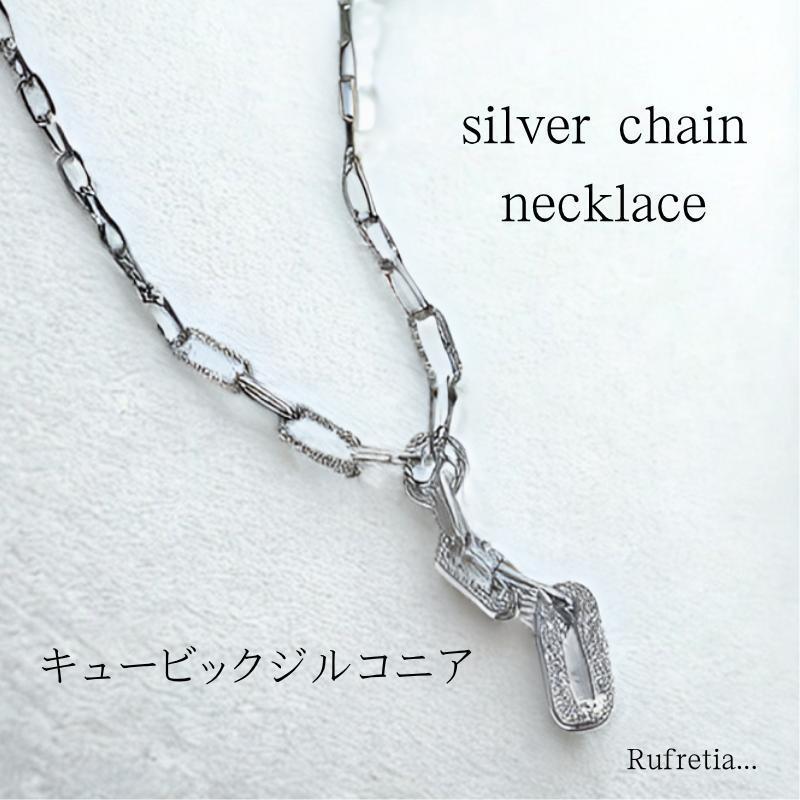 - Y字ネックレス レディース シルバー キュービックジルコニア ジオメトリック