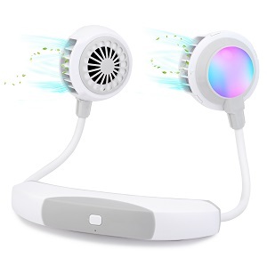 - ネックファン首かけ扇風機羽なし静音軽量高品質360度LED付RGB光 白