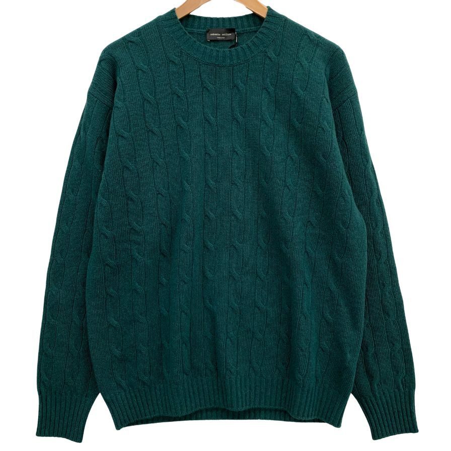 - 新品同様◆ニット・セーター ロベルトコリーナ ニットセーター ケーブル編み ミドルゲージ ウール クルーネック グリーン メンズ48【AFB5】
