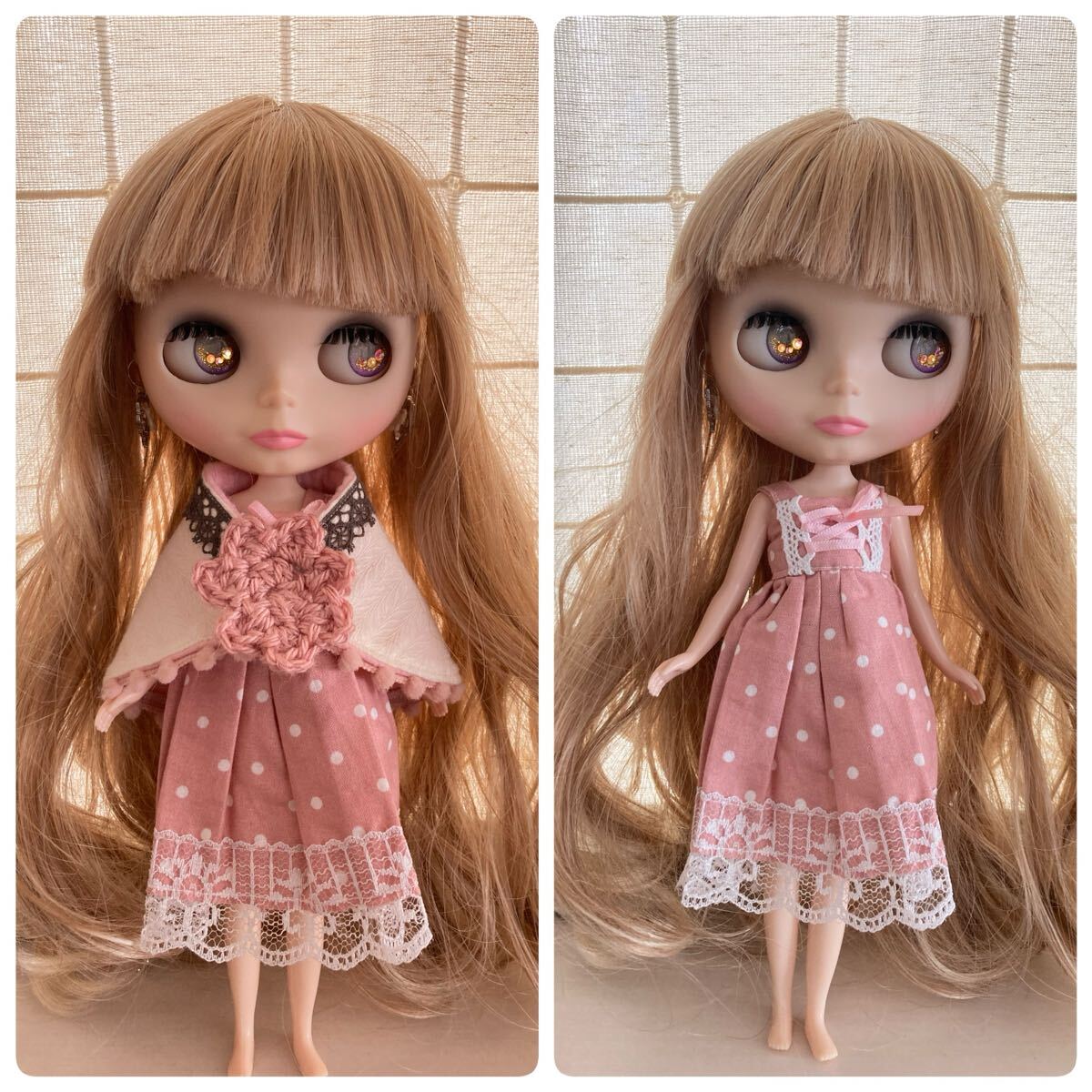> ネオブライス 水玉ワンピ ケープ付き ドット ピンク 洋服 プーリップ ダル 1/3 1/6 ドール アウトフィット 着せ替え人形 ハンドメイド