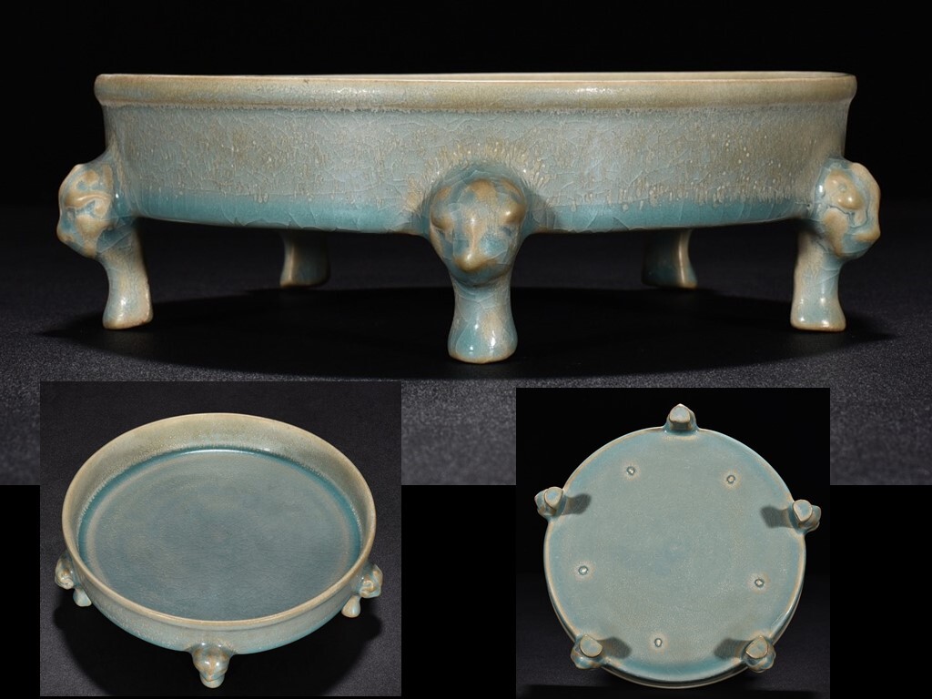 - TB253■中国古玩 唐物 宋時代 汝窯 天青釉 獣足洗 極上品■高さ6cm・直径19cm■