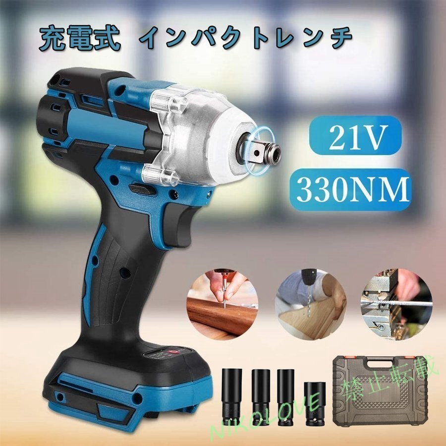- 新品 インパクトレンチ タイヤ交換 電動充電式 ブラシレスレンチ マキタ 18Vバッテリー互換 無段変速 正逆転両 最大トルク300N.m LB338