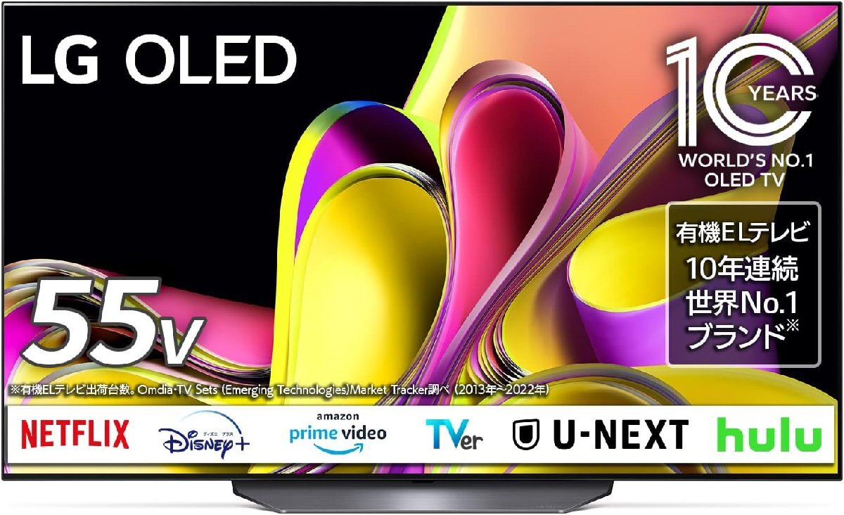 電子機器のため、輸送中の振動や衝撃などで内部不具合が発生する場合もあります。代品や返品交換等ありませんので、到着後に故障や動作不良がありましたら、メーカーでの対応のみとなります。保管輸送中に箱のテープ止め部分の剥がれや箱に汚損ができたため安く仕入れられました。-----------------------------------------------------------------------------------------------------------ネット配信アプリ対応リストは下記URLからご確認ください。ほとんどの動画配信サービスに加えてゲームなども配信しているようです。https://jp.lgappstv.com/main/tvapp商品詳細は下記のメーカーページからご確認ください。https://www.lg.com/jp/tvs-soundbars/oled/oled55b3pja/?srsltid=AfmBOoqi9BfVbSyJ-0lkfkpcZwXjkQlMIO1SAmCO88Axf6w7WgiB7kob-----------------------------------------------------------------------------------------------------------LGエレクトロニクス OLED B3シリーズ 55V型 4K有機ELテレビ 倍速対応 OLED55B3PJA の 商品概要