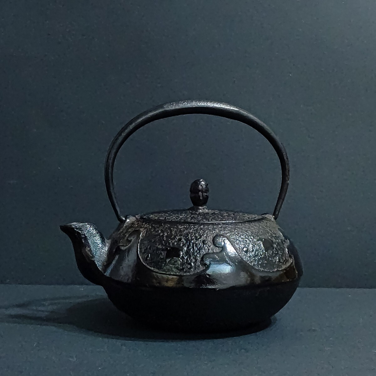 - 照光堂 南部 急須 波千鳥文様 鉄瓶 茶道具 レトロ 中古 送料無料 即決