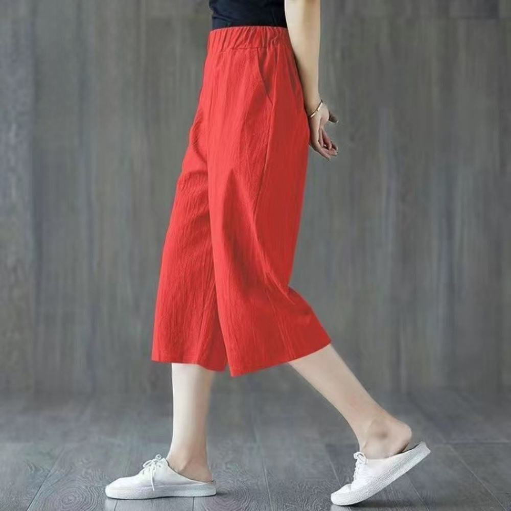 > ☆ レッド ☆ Lサイズ ☆ ズボン コットン レディース lypa267 クロップドパンツ レディース ワイドパンツ 7分丈 パンツ ズボン 七分丈