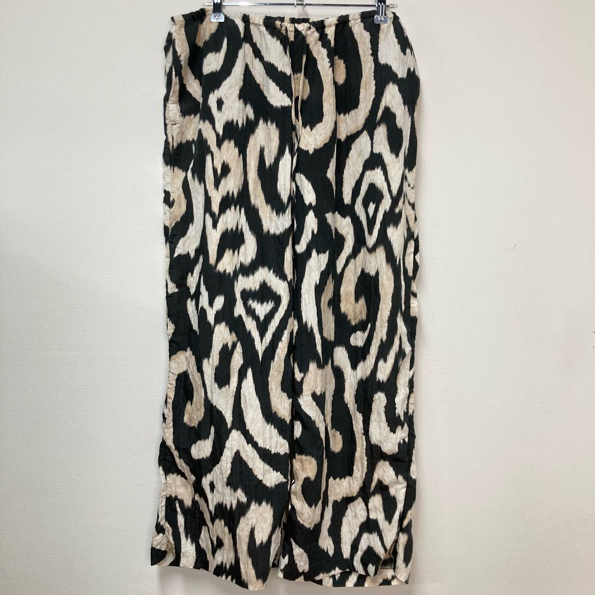 > ♪ H&M エイチアンドエム アニマル柄 レオパード ひょう柄 ナイロン ワイドパンツ Mサイズ 165/80A 黒 ブラック ベージュ 総柄