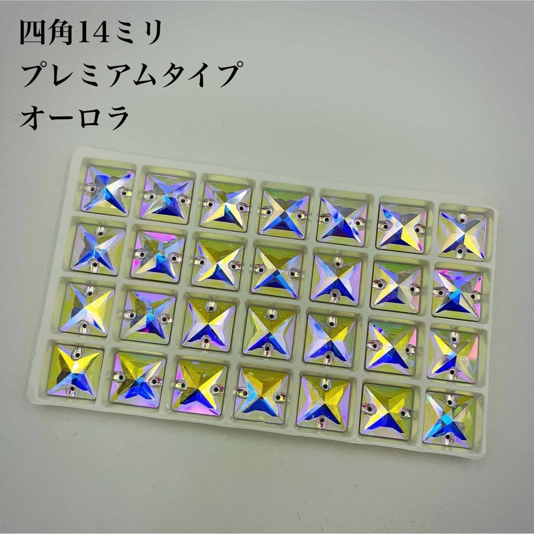 - 【プレミアムタイプ】装飾用 高輝度 ガラスビジュー/四角 14㎜ 28個