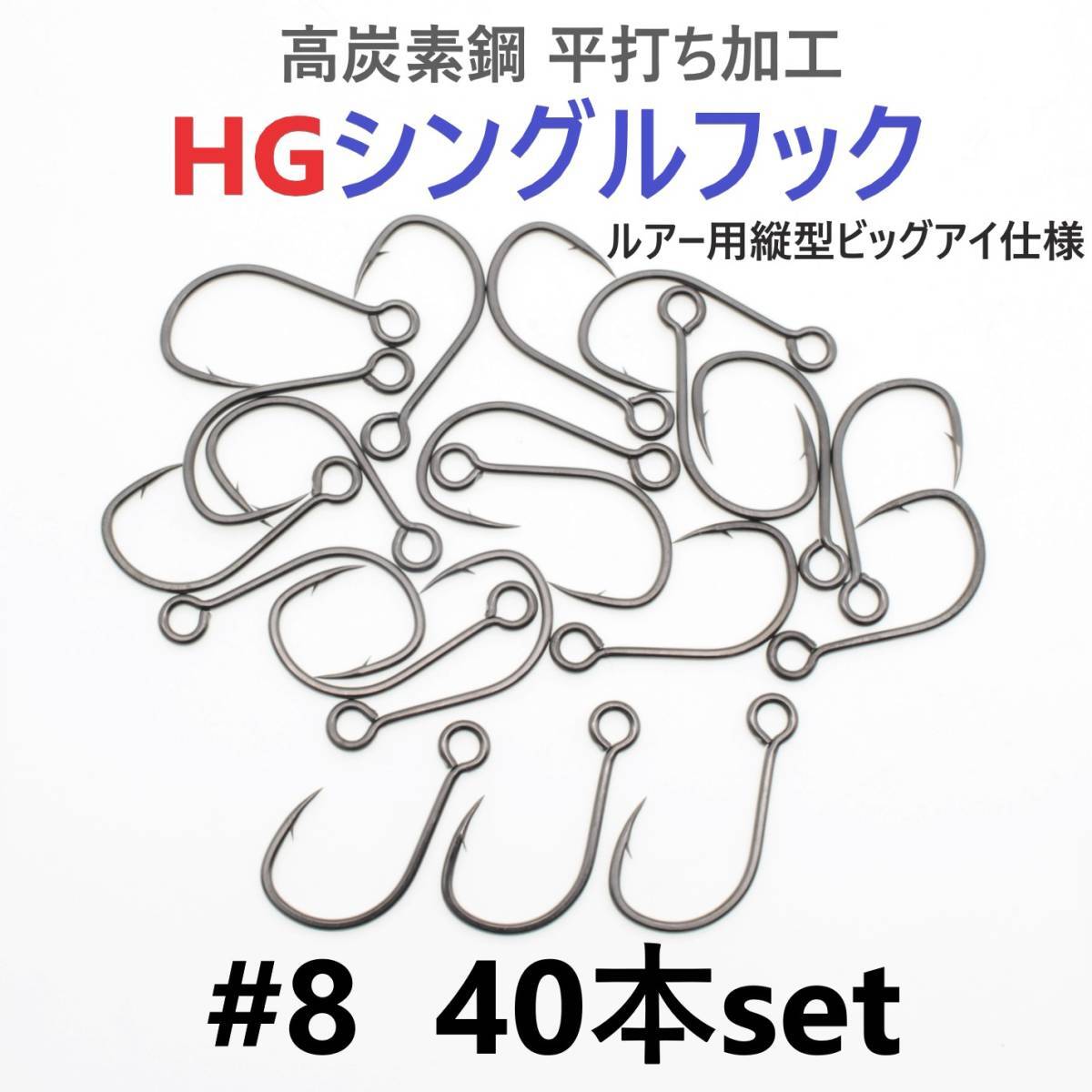 > 【送料150円】高炭素鋼 平打ち加工 ハイグレードシングルフック #8 40本セット ソルト対応 ブラックニッケルメッキ 縦アイ ビッグアイ仕様