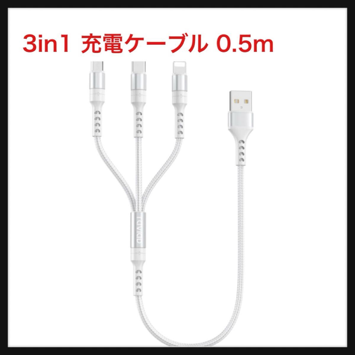 - 【開封のみ】RAVIAD ★3in1 充電ケーブル 短い 0.5M USB ケーブル 3A 急速充電 3イン1 充電コード USB Type C ケーブル