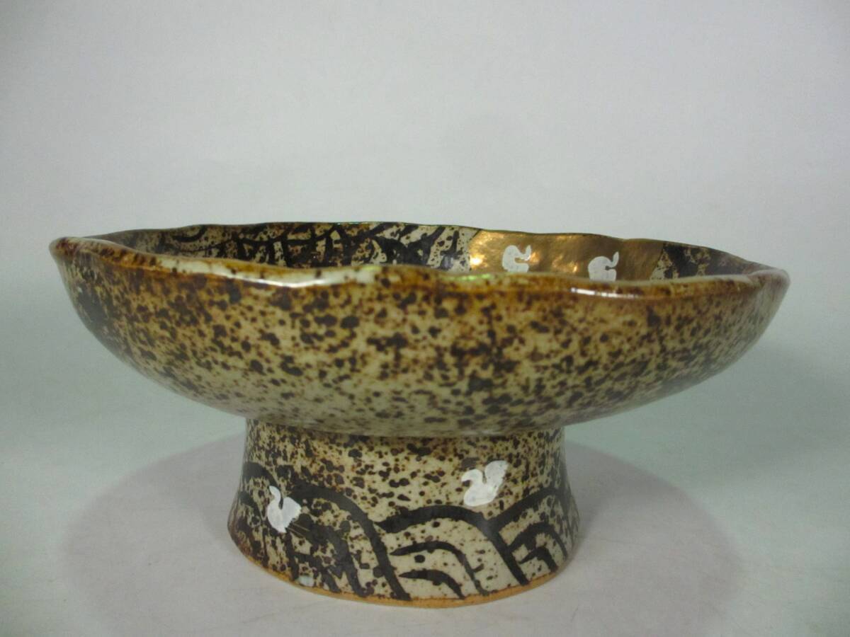 > 本物保証 北大路魯山人 高台鉢 金彩 鉄釉 水鳥「魯」在名 本物返品OK 250622−11