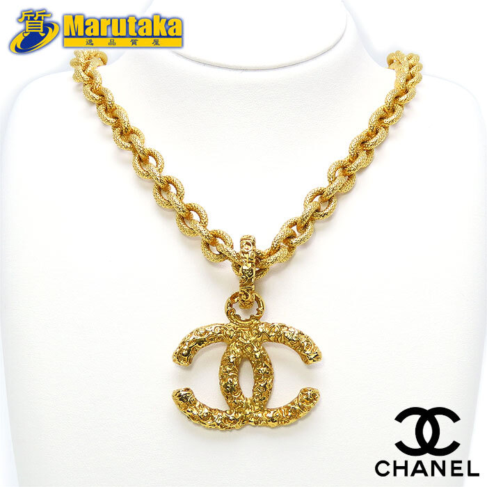 > 【シャネル】ココマーク 溶岩 チェーン ネックレス GP ゴールド 93A ヴィンテージ CCマーク 人気デザイン おしゃれ CHANEL 中古 22-20-2