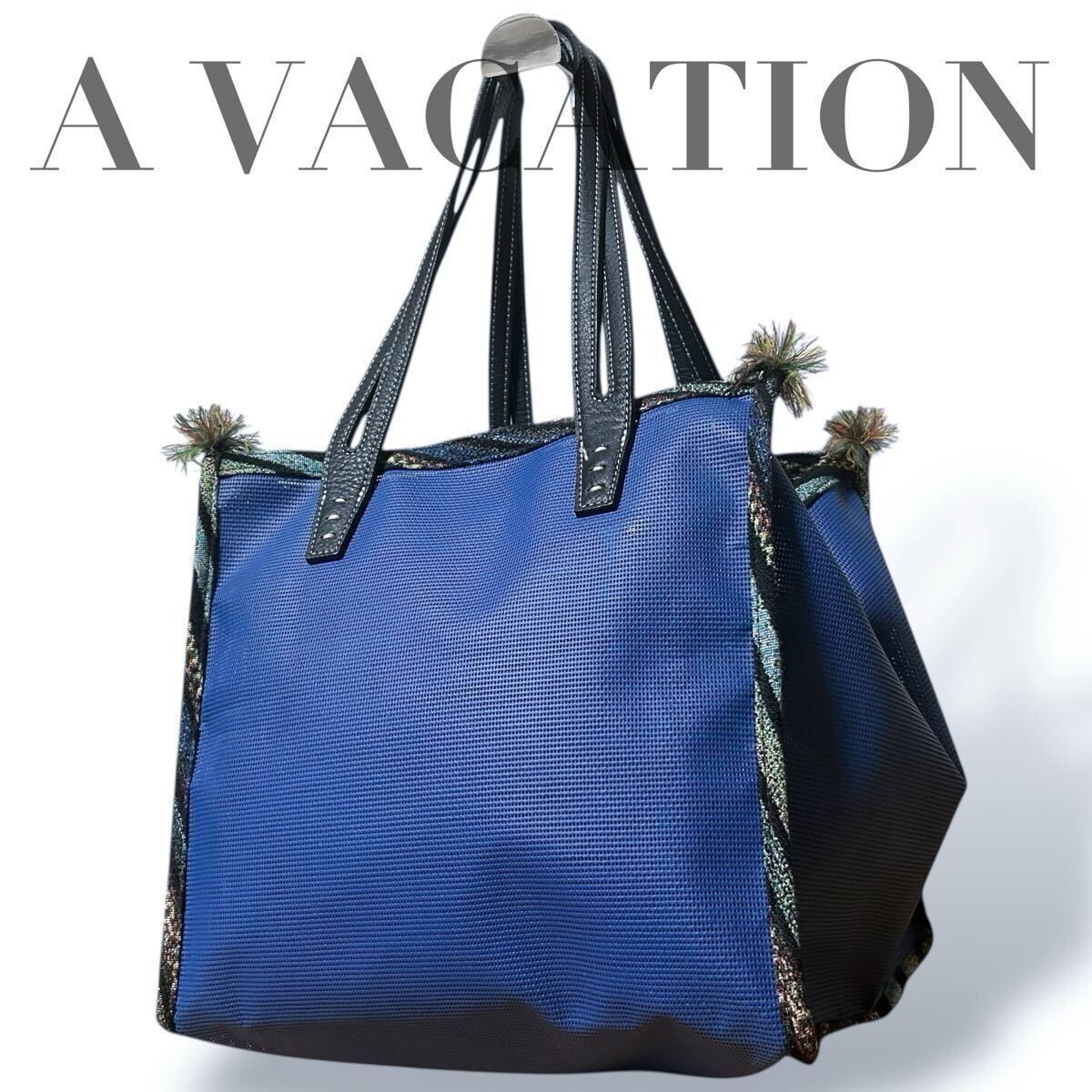- 美品 アヴァケーション A VACATION ハンドバッグ トートバック メッシュ ブルー青 2way 大容量 レディース 肩掛け