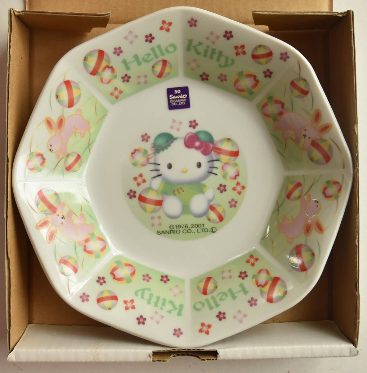 > サンリオ ハローキティ 飲茶がいっぱい 中華皿 八角皿 絵皿 ウサギ 黄緑 チャーハン皿 陶磁器 レア品 超レア 激レア