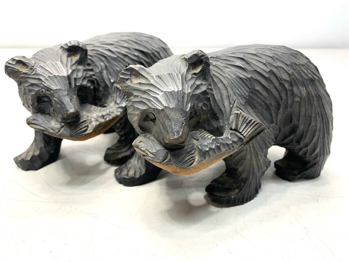 - 兄弟 木彫りのくま 2体セット 彫刻 アイヌ民芸 インテリア ヴィンテージ アンティーク レトロ A9298A06
