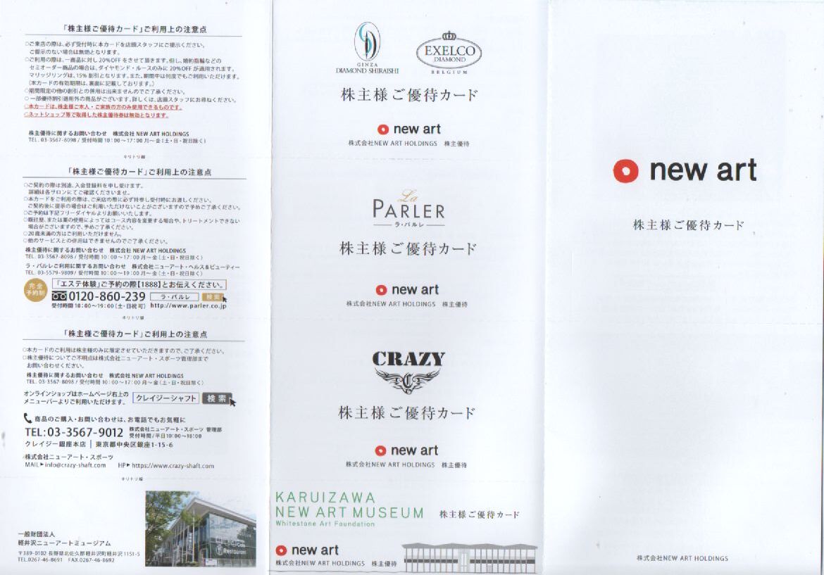 - NEW ART 株主優待カード 軽井沢ニューアートミュージアム無料観覧券など 有効期限:2026年3月31日 普通郵便・ミニレター対応可