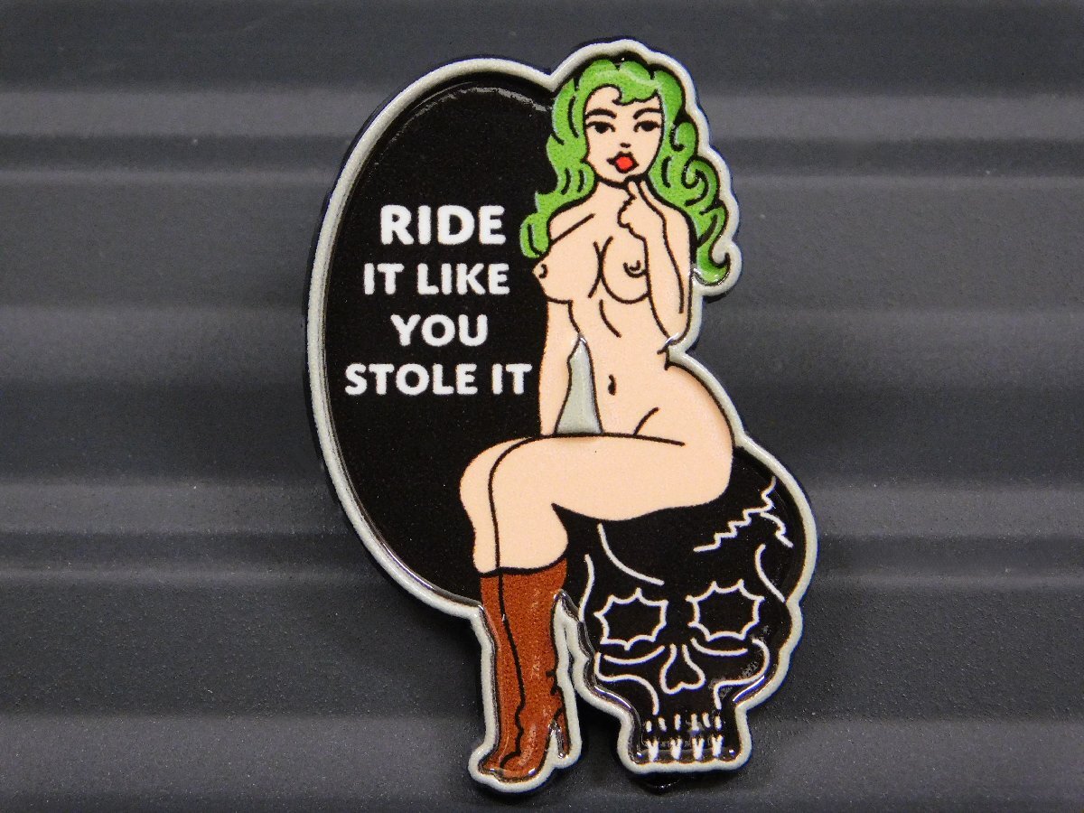 - 【ピンバッジ・ピンズ】※《ピンナップガール / RIDE IT LIKE YOU STOLE IT》 美女 アメリカン雑貨