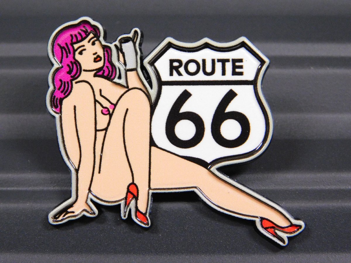 - 【ピンバッジ・ピンズ】※《ピンナップガール / ROUTE 66》 美女 アメリカン雑貨