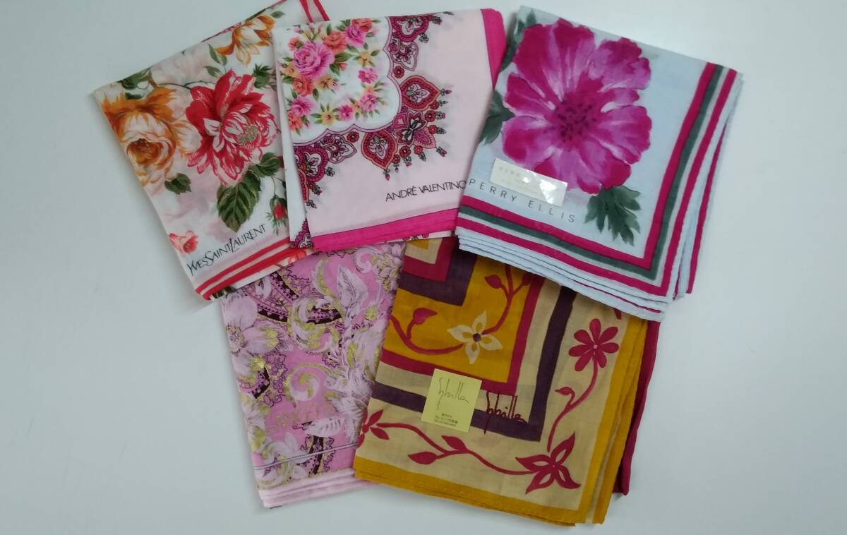 - 【☆JN-1319】 中古品 ブランド ハンカチ5点セット イブサンローラン、アンドレバレンチノなど (S:H)