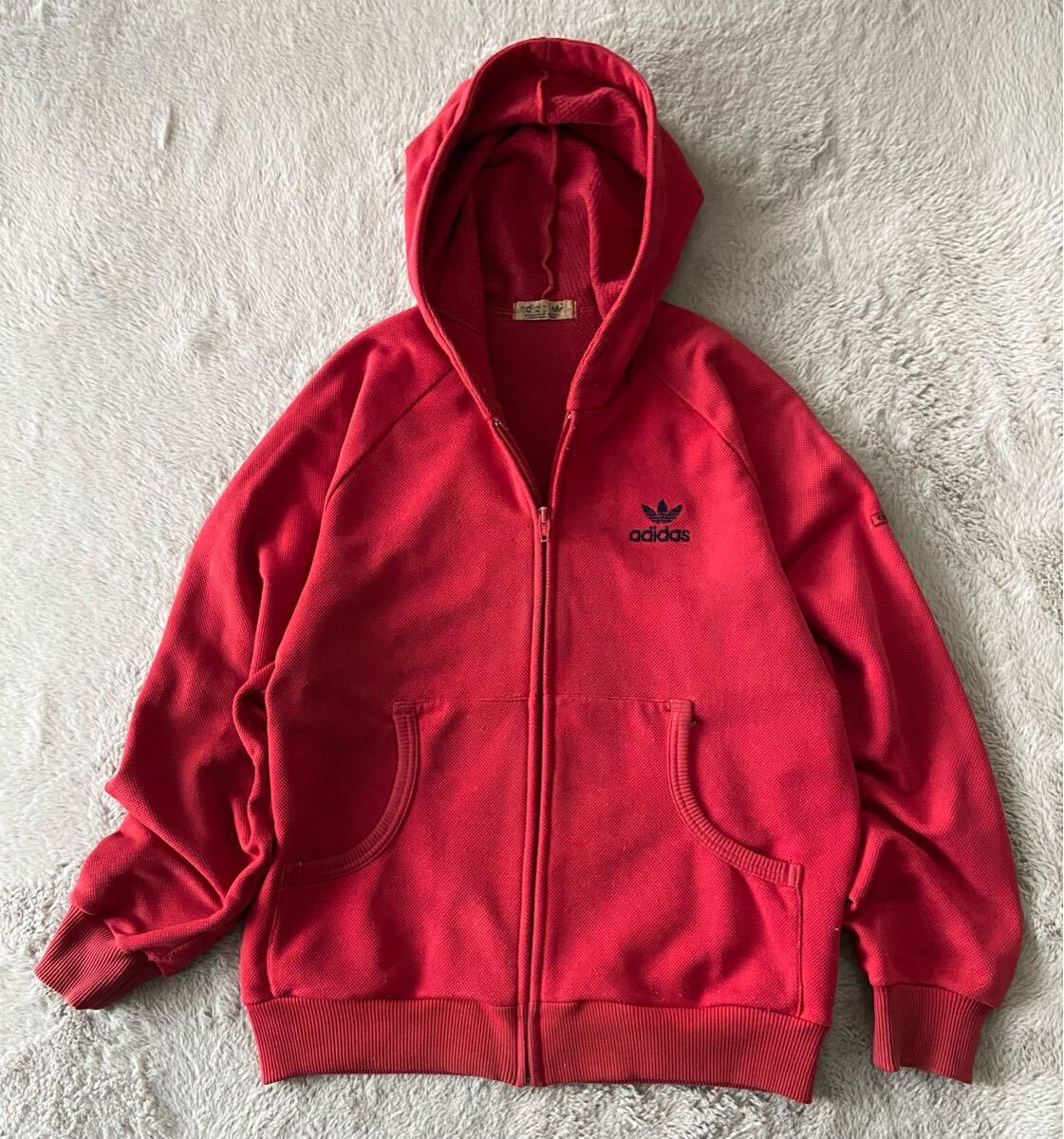 - 【80-90s★アディダス/トレフォイル刺繍】ジップアップパーカー!【S表記/レッド】衝撃プライス!ヴィンテージフリーク待望★D71