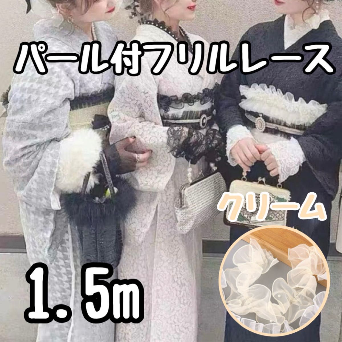 - 1.5m 帯揚げ 帯飾り レース パール 袴 浴衣 クリーム オーガンジー 帯