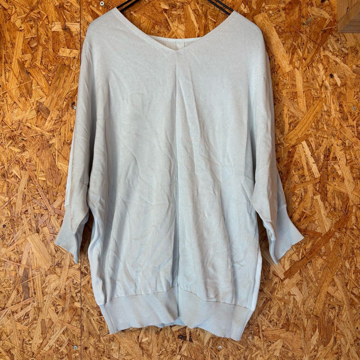 > 美品 INDIVI 日本製 生地切替ニット Vネック 薄手 カットソー レディース トップス 七分袖 グレー 4561