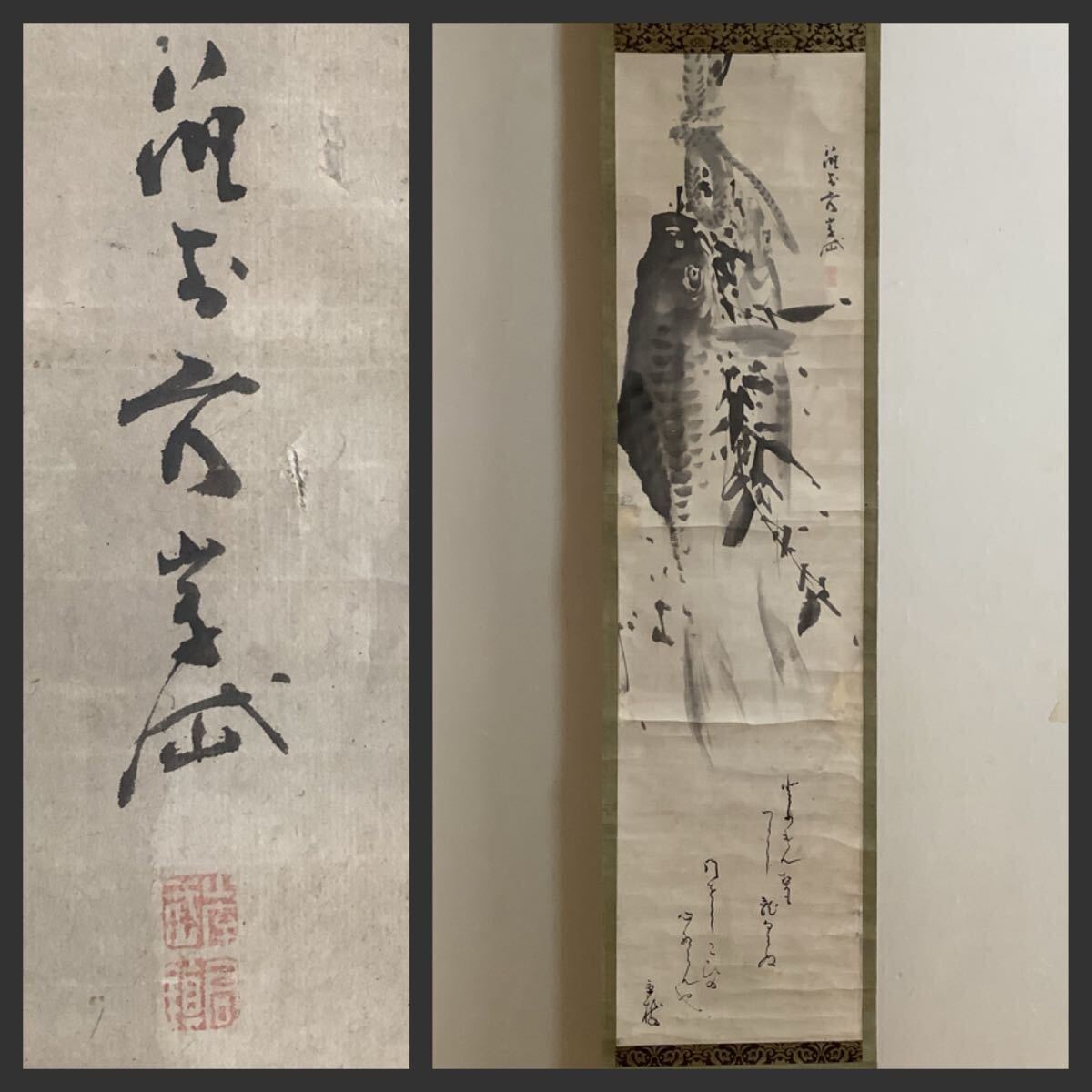 > 【模写】掛軸Jun7124B[岸岱画 香川景樹讃 鯉のぼり図]紙本 書いたもの 木箱/日本画 岸駒長男 江戸後期絵師 君鎮 歌人 古書 端午