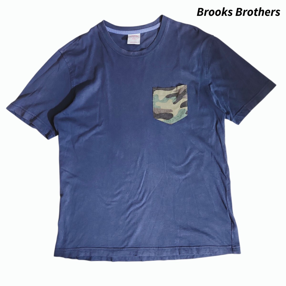 > Brooks Brothers 胸ポケット付き Tシャツ 表記サイズM ネイビー&カモフラ 84610