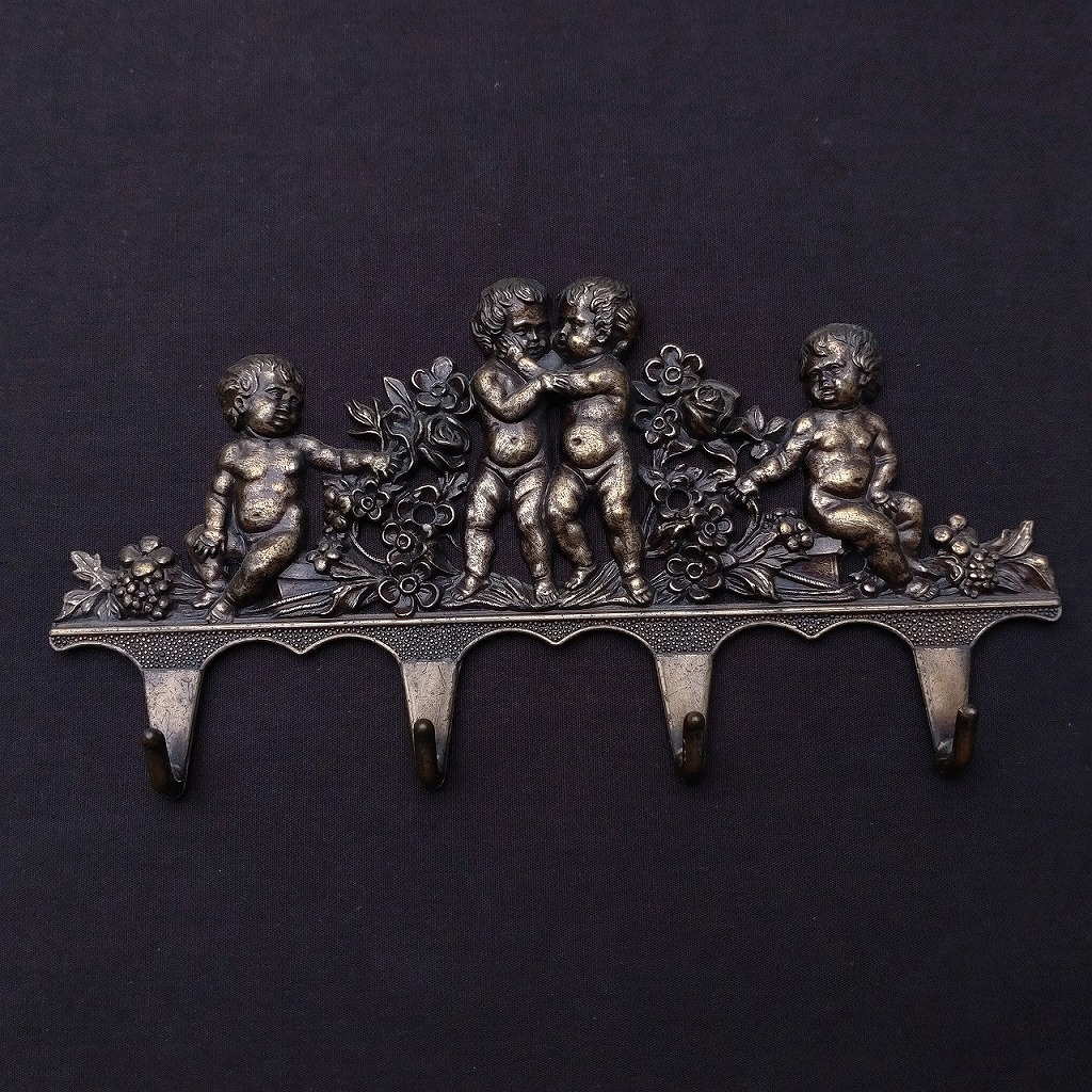 - アンティ―ク調 壁掛け フック ハンガー掛け イタリア製 横幅約158㎜ 縦幅約80㎜ 金属製 【6160】