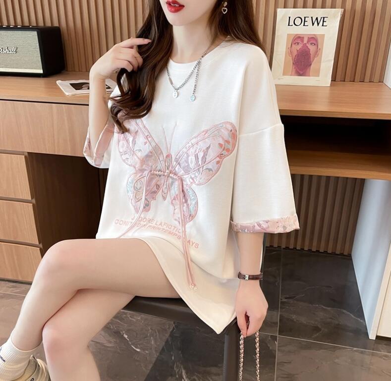 - 人気 新品 半袖tシャツ レディース トップス 半袖 tシャツ 中華風 カットソー 夏服 薄手 プリント 丸首 英文字 カジュアル ゆるカットソー