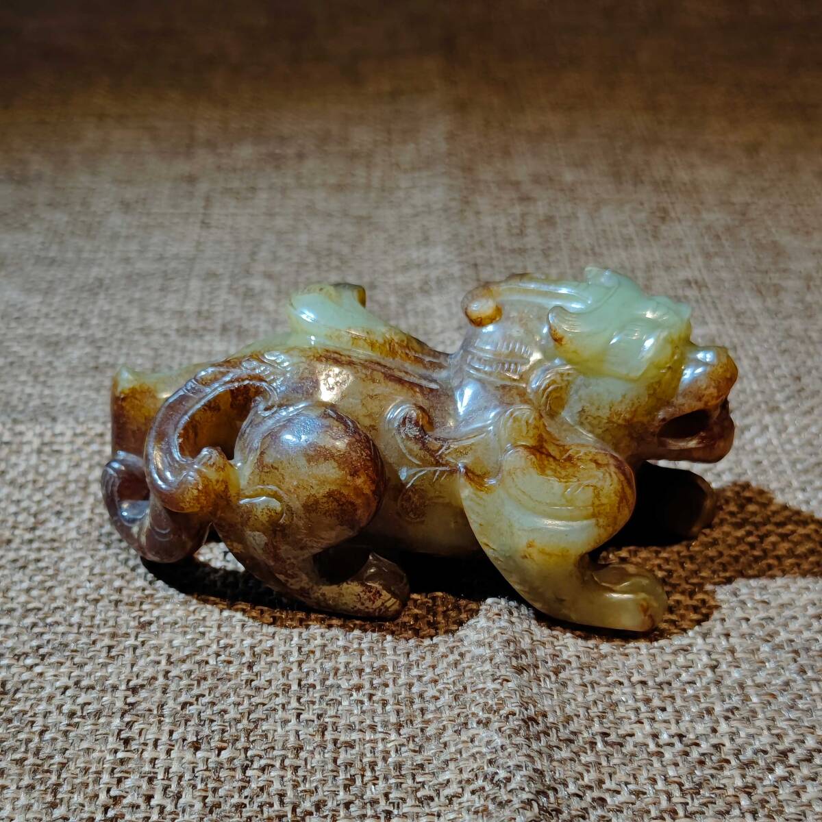 - 6+GV3808「東洋美術」 人間国宝 和田玉 極細工 古置物 中国古美術 【古代和田玉の吉祥獣】 旧物 珍品 収蔵価値が高い