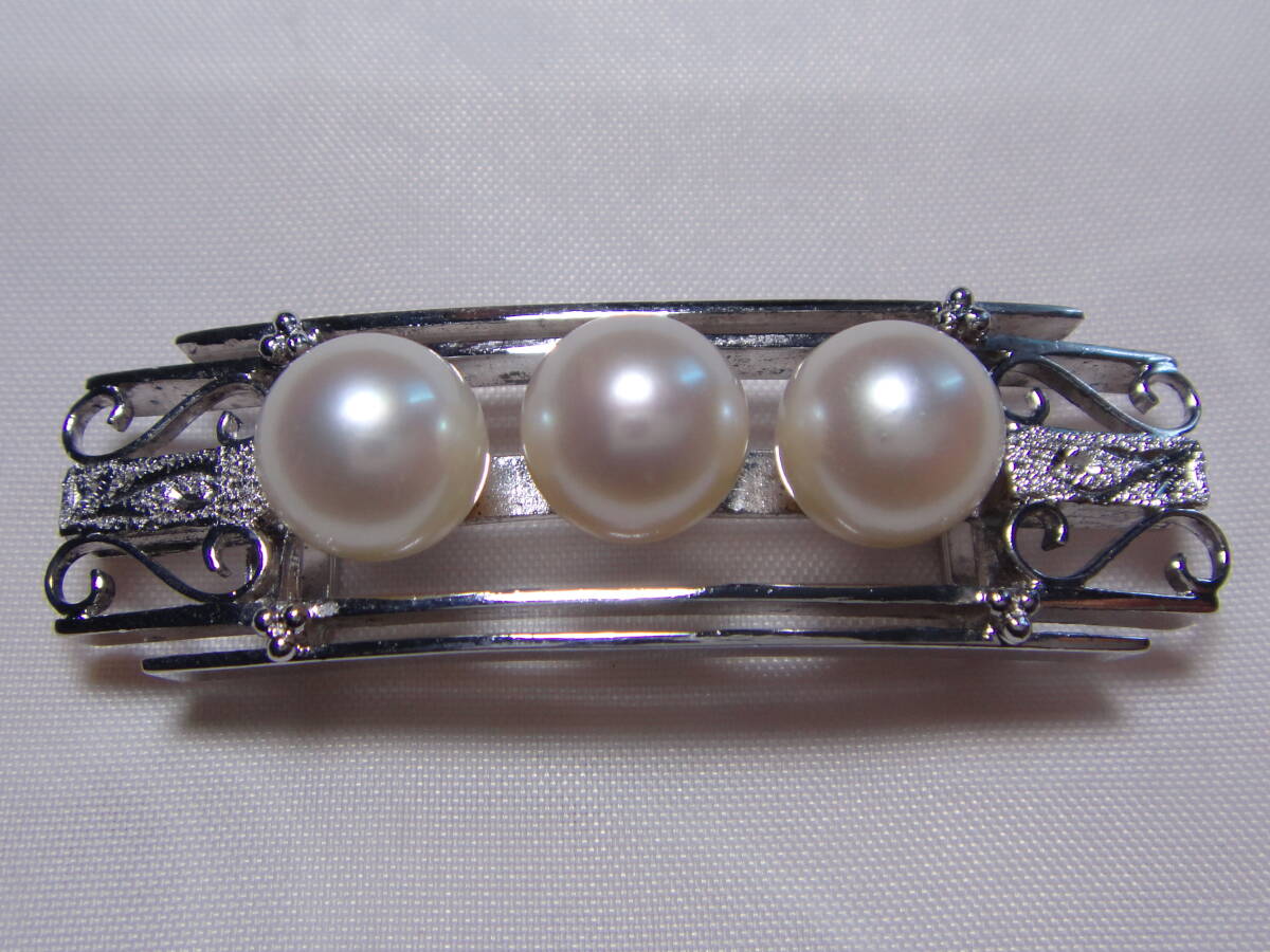 - アコヤ真珠 本真珠 本パール 帯留め 大玉! 約8㎜ 良品 SILVER刻印 ヴィンテージ Y731
