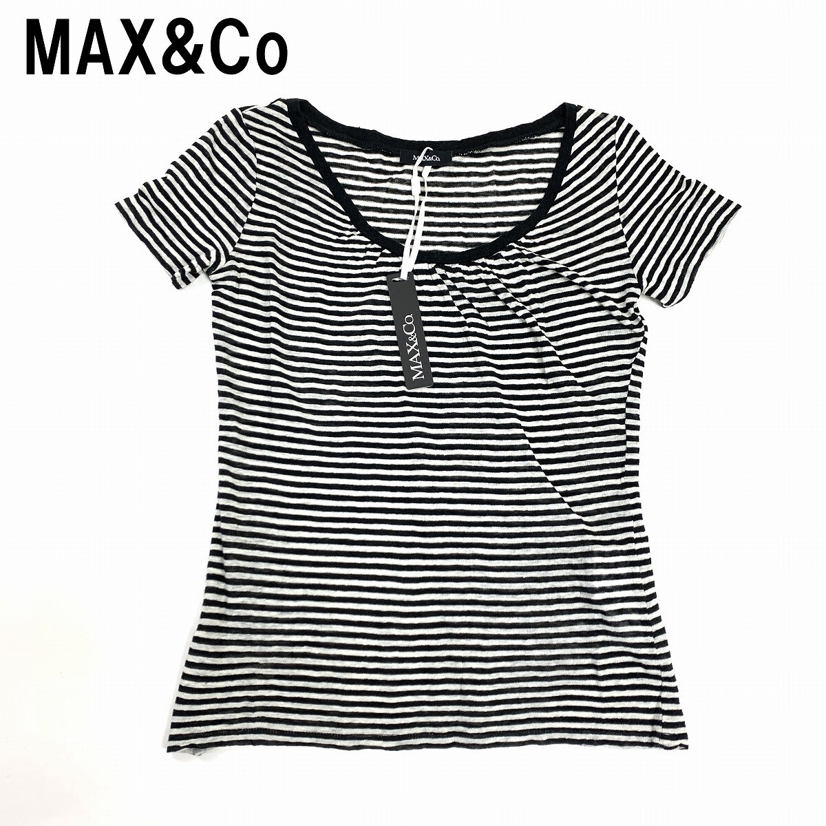 > 新品タグ付き MAX&Co マックスアンドコー マックスマーラ 半袖Tシャツ リネン ボーダー 白 黒 ホワイト ブラック S YC537