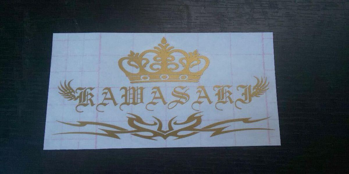 - 13㎝サイズ kawasaki カワサキ トライバル 王冠 羽 ドレスアップ カッティングステッカー 金色 色変更可能