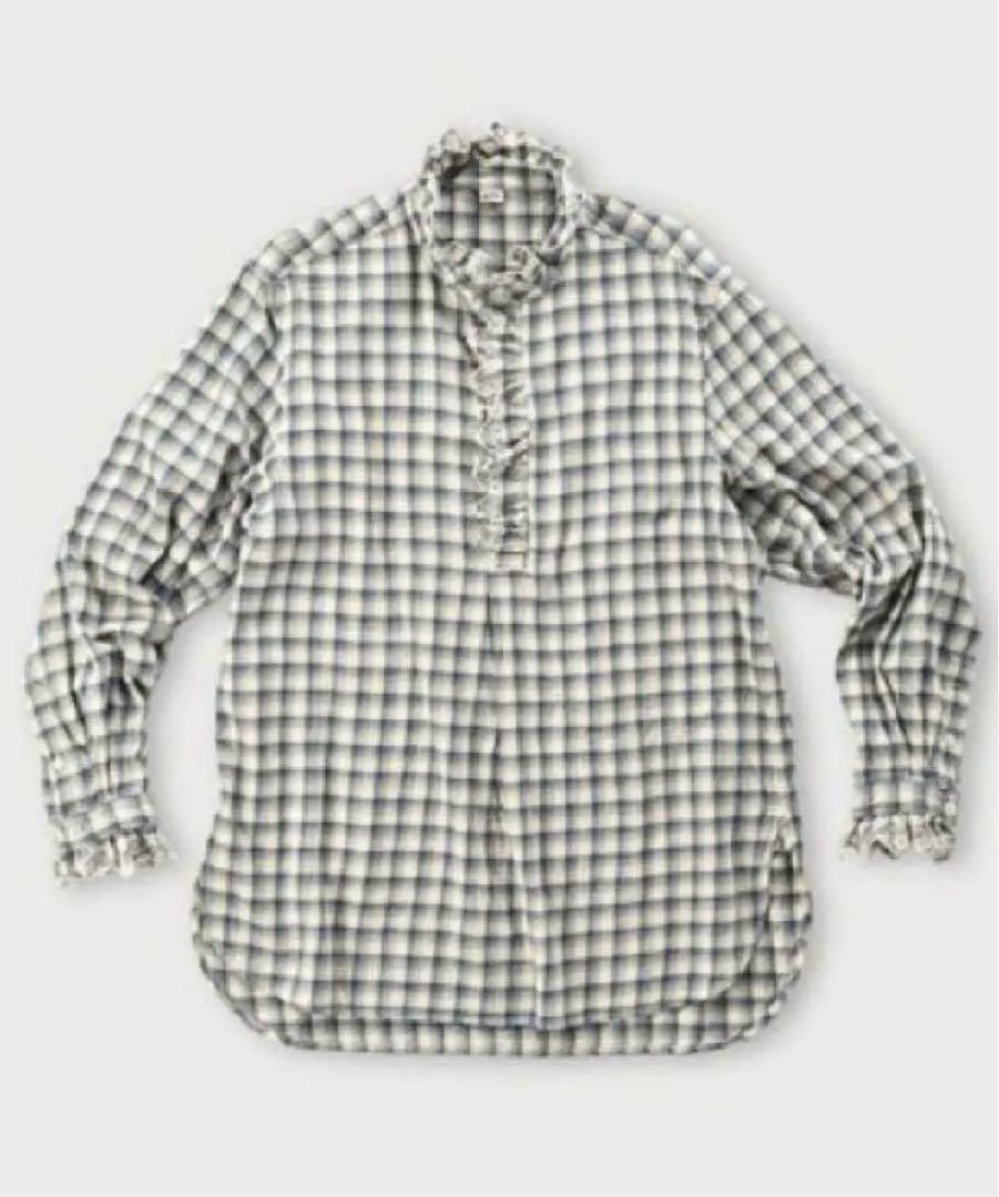 - 45rpm 45r インドウスネルのヘンリーカットワークシャツ フリル チェック シャツ ブラウス 2