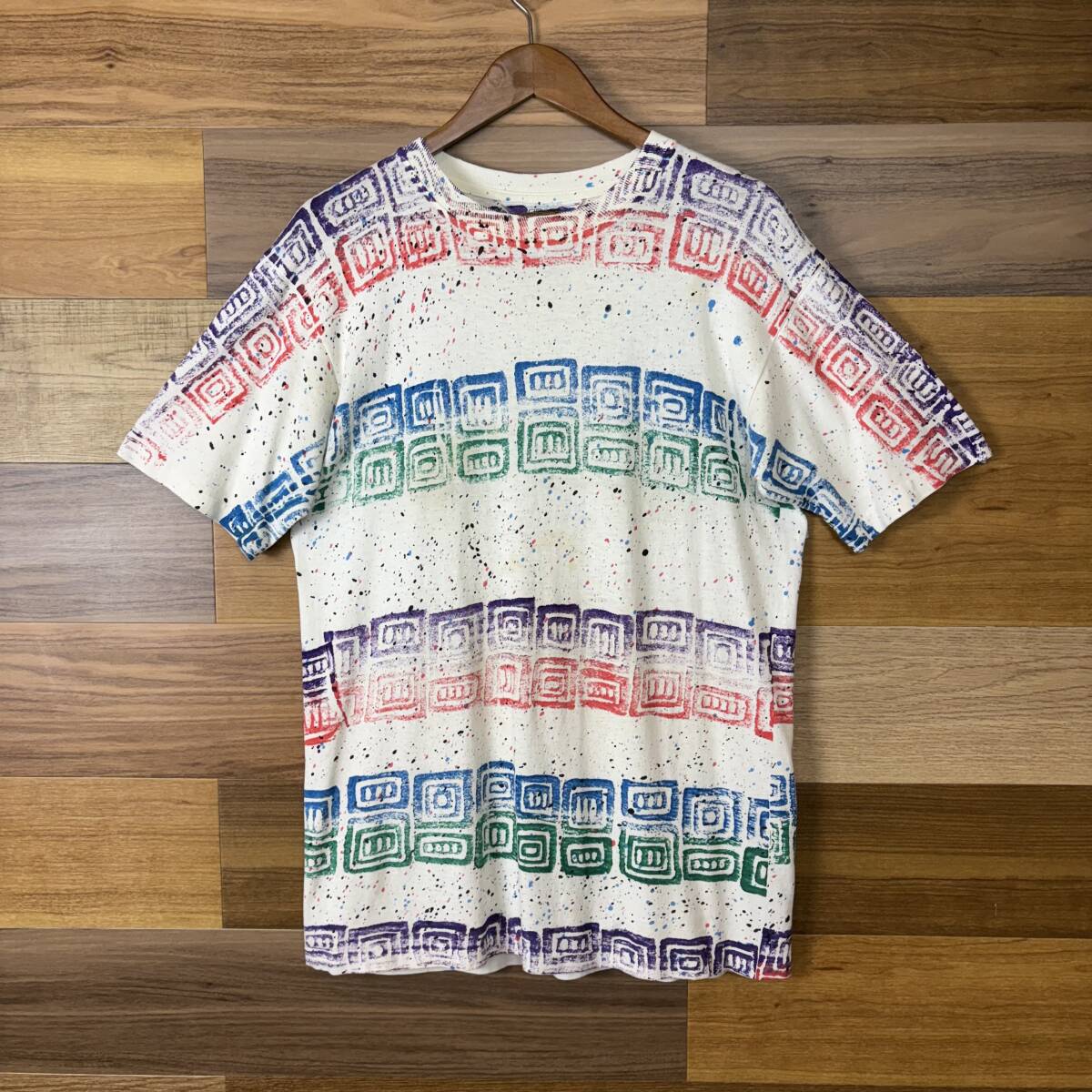 > USA製 90s オールオーバー 総柄 プリント T-sh Tシャツ サイズ メンズ L シングルステッチ アメリカ製 90年代 VINTAGE 古着 r25062711