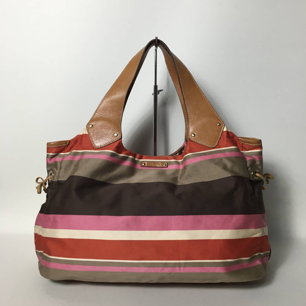 > 76B139|ケイトスペード トートバッグ ブラウン マルチカラー ボーダー