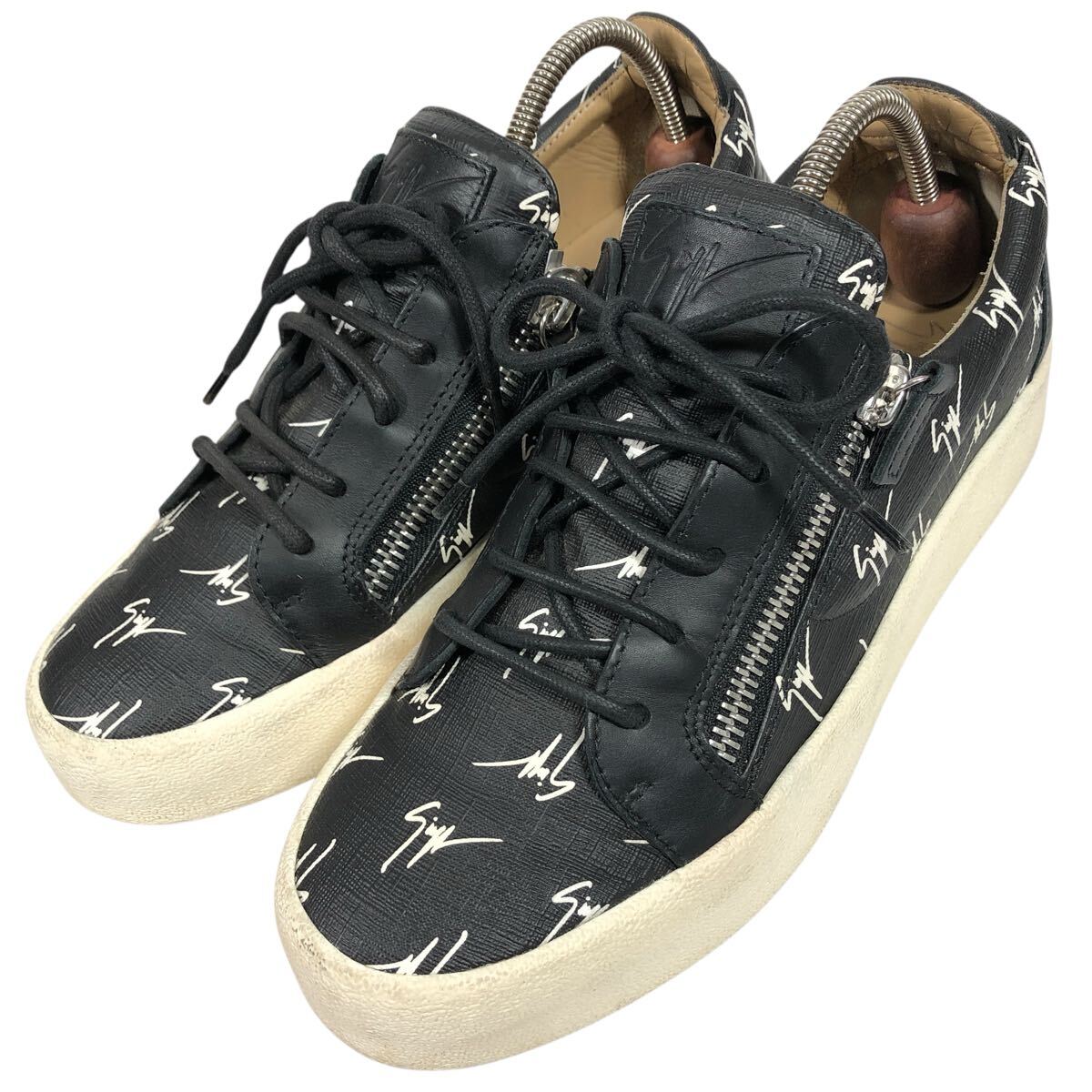 - 【ジュゼッペザノッティ】本物 GIUSEPPE ZANOTTI 靴 25cm 総柄 スニーカー カジュアルシューズ 黒色×白アイボリー 男性用 メンズ 伊製 40