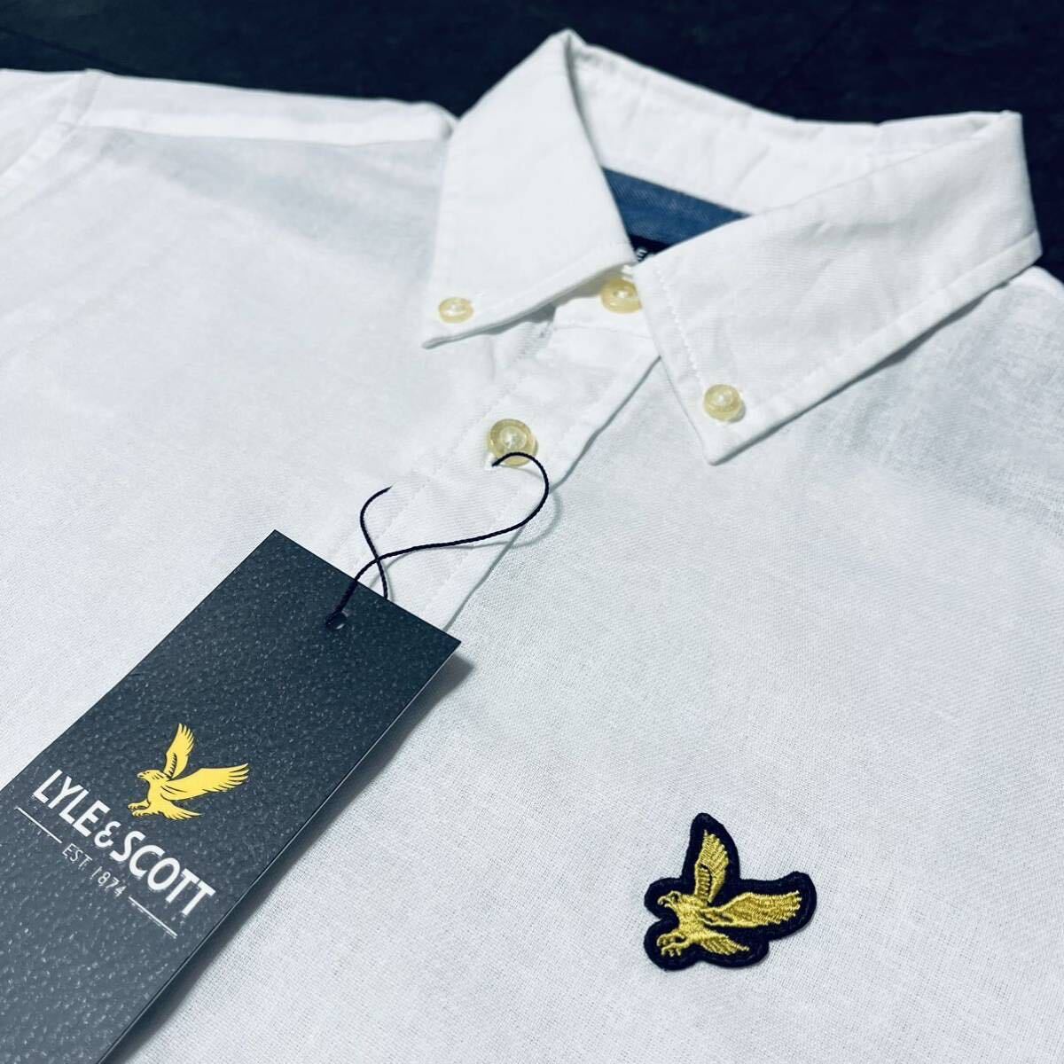 > LL/XL/2L/O 送料無料 ライルアンドスコット 半袖 シャツ メンズ 新品 ワンポイント ワッペン 春夏 薄手 ホワイト 白 ボタンダウン 綿100%
