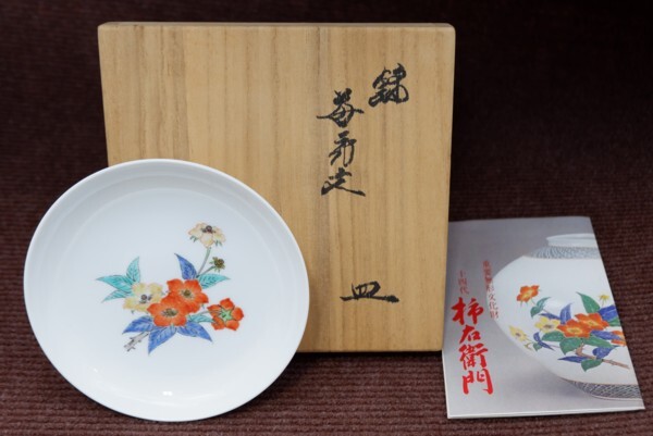 > 十四代酒井柿右衛門 錦苺乃文 皿 重要文化財 人間国宝 真作保証 Y-023