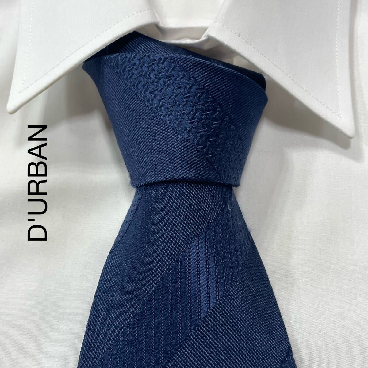 - D'URBAN ダーバン レジメンタル ストライプ ジャガード シルク ネクタイ 日本製 ネイビー TG2543