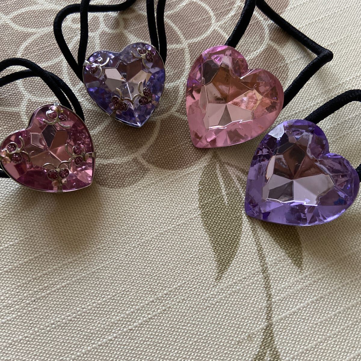 - 髪飾り ヘアゴム ハート ピンク パープル 紫 推し色