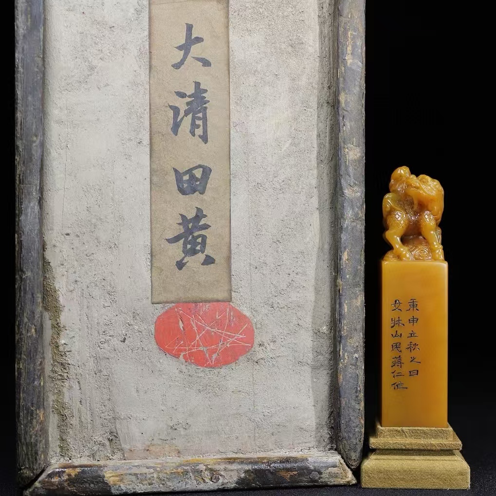 - 秘藏 清代 寿山石田イエローストーンキリン献宝帝王印 印章 印鑒 古印材 印鑑の方 老玉 唐物 古玉彫 天然石 珍品 古賞物 古置物 旧蔵6.18