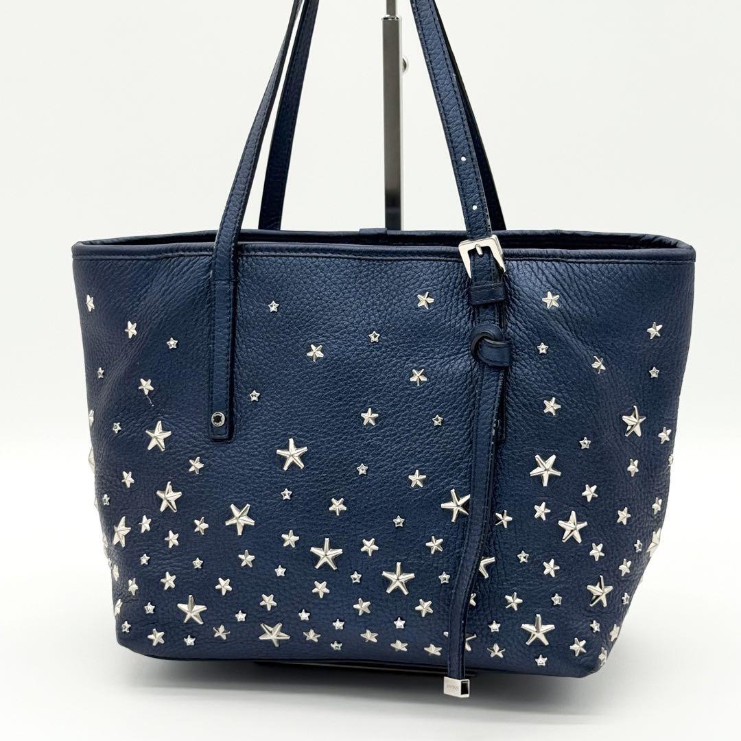 - 【美品】JIMMYCHOO ジミーチュウ SASHA サシャ スタッズ 星 トートバッグ ハンドバッグ レザー ボタン レディース ネイビー ADF690526
