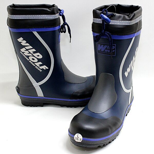 - LL 27cm 長靴 ショートラバーブーツ 樹脂製先芯入り 安全靴 WILD WOLF ワイルドウルフ オカモト RMT-70315