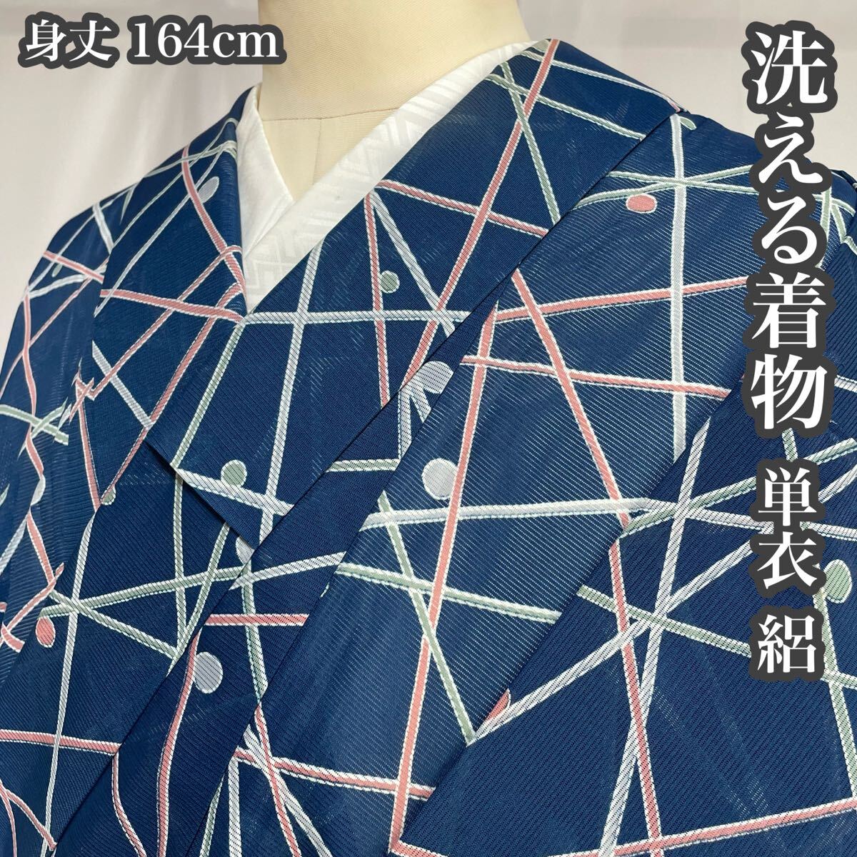 - #H473 洗える着物 単衣 絽 ポリエステル 幾何学模様 身丈164cm 和装 和服 夏物 着物【wellriver】