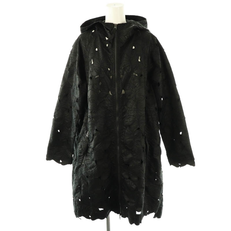 > レッド ヴァレンティノ RED VALENTINO カットワークフラワー刺繍ジップアップジャケット フード 38 ブラック /DO ■OS レディース
