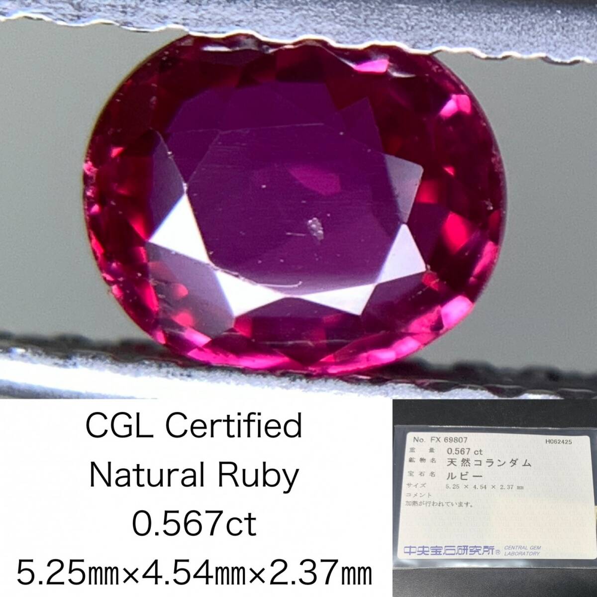 > ルビー 天然 0.567ct 中央宝石ソーティング付き 5.25×4.54×2.37 ルース( 裸石 ) 5664Y