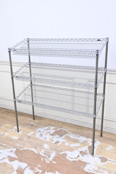 - FD061 業務用 10万円 エレクター エレクターシェルフ スランテッドシェルフ 3段 什器 斜め棚 パンフレットラック メタルラック 幅121cm