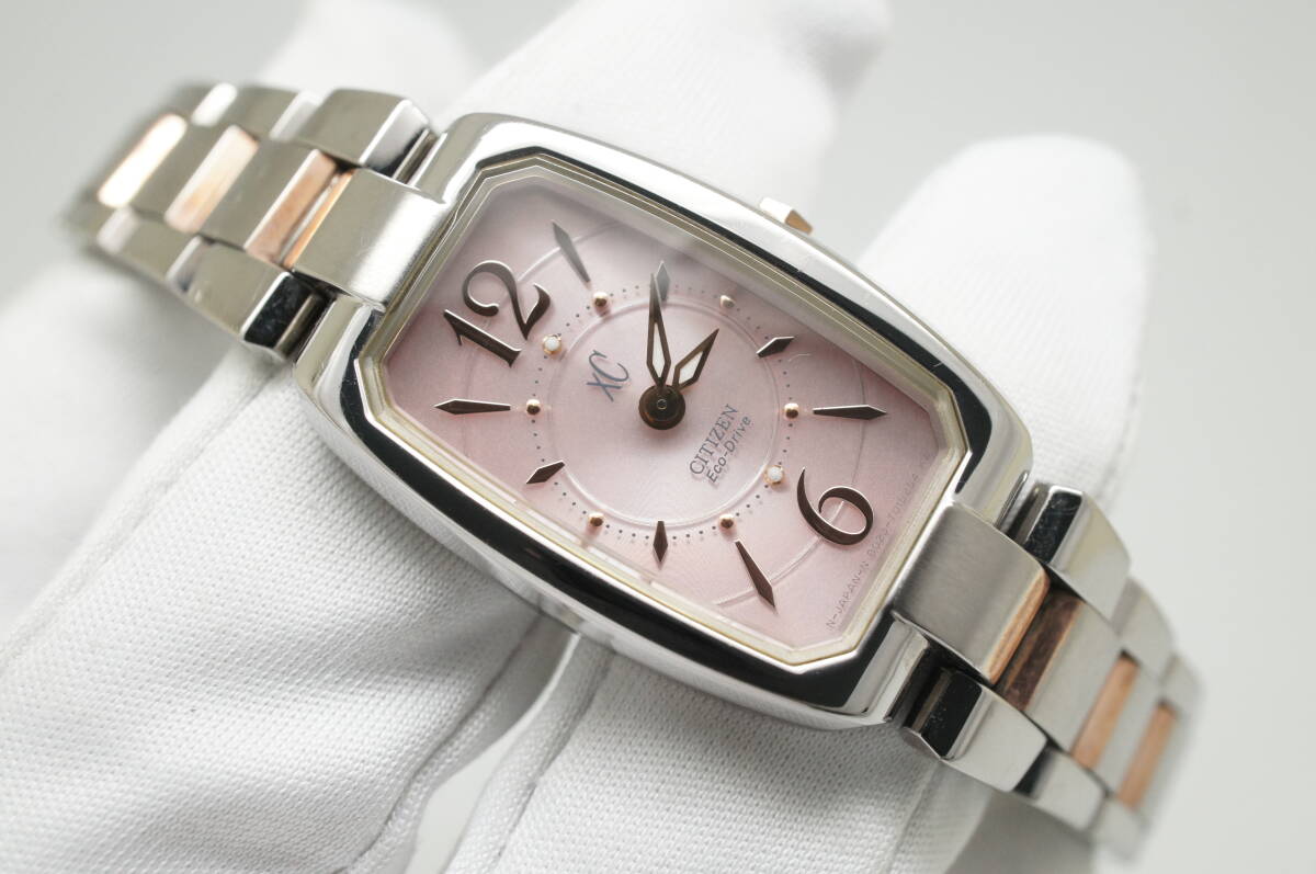 - G7●作動良好 美品 CITIZEN シチズン XC クロスシー エコドライブ B023-T011250 ソーラー ピンク文字盤 レディース腕時計 コンビ お洒落