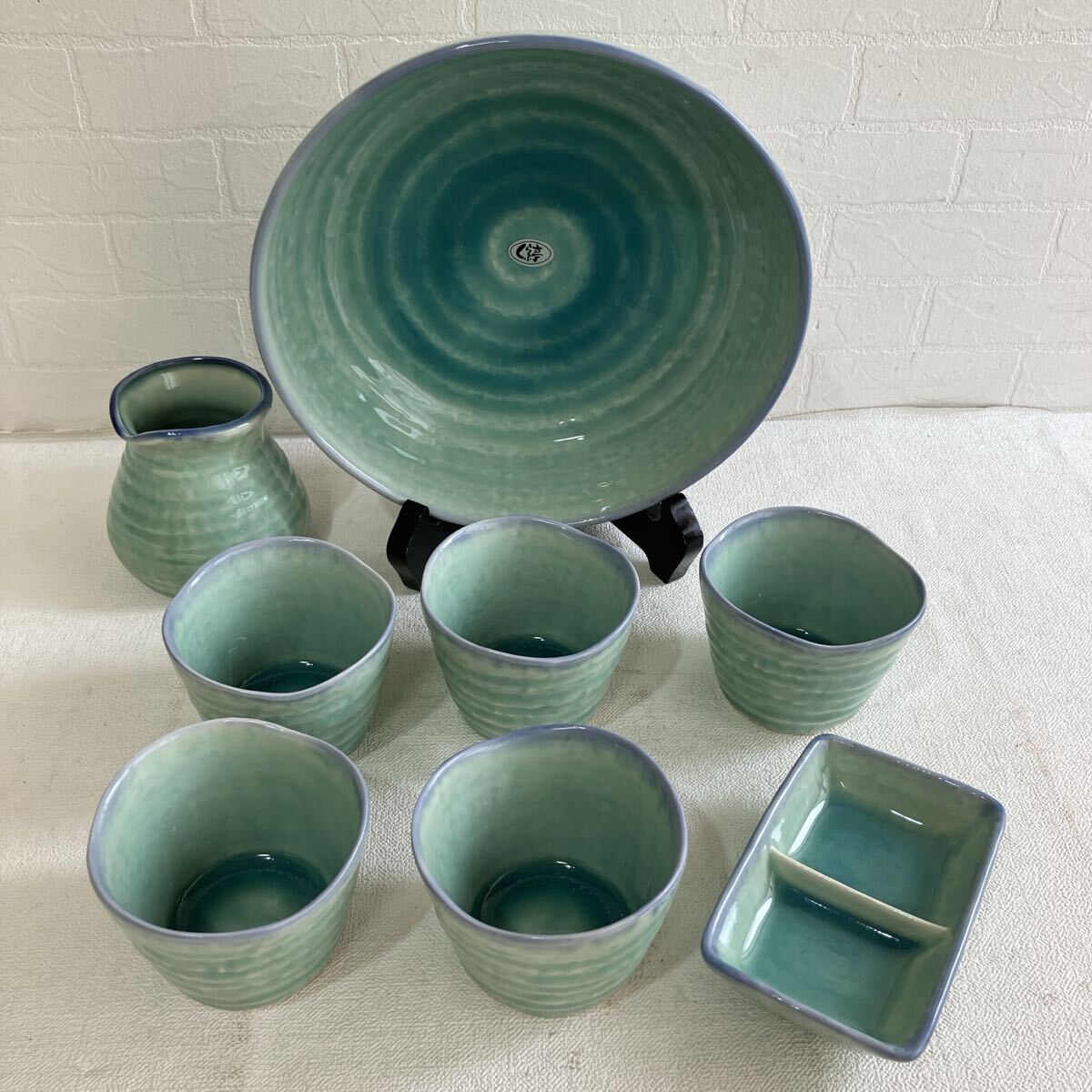 > ☆【未使用品】日本クラフト NIPPON CRAFT お皿セット 5客 蕎麦 うどん 陶器 緑 グリーン系 器 日本製 昭和レトロ 保管品